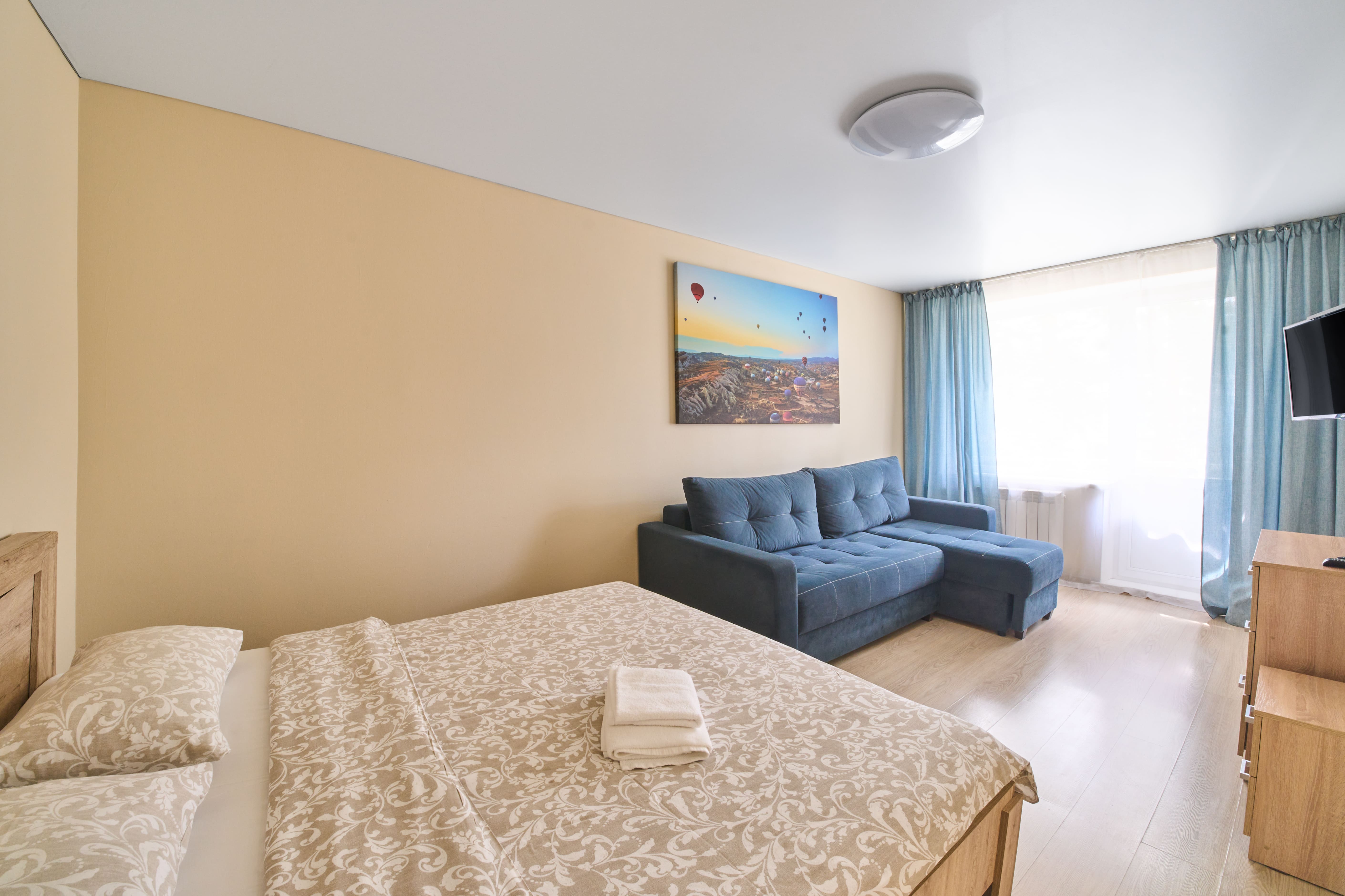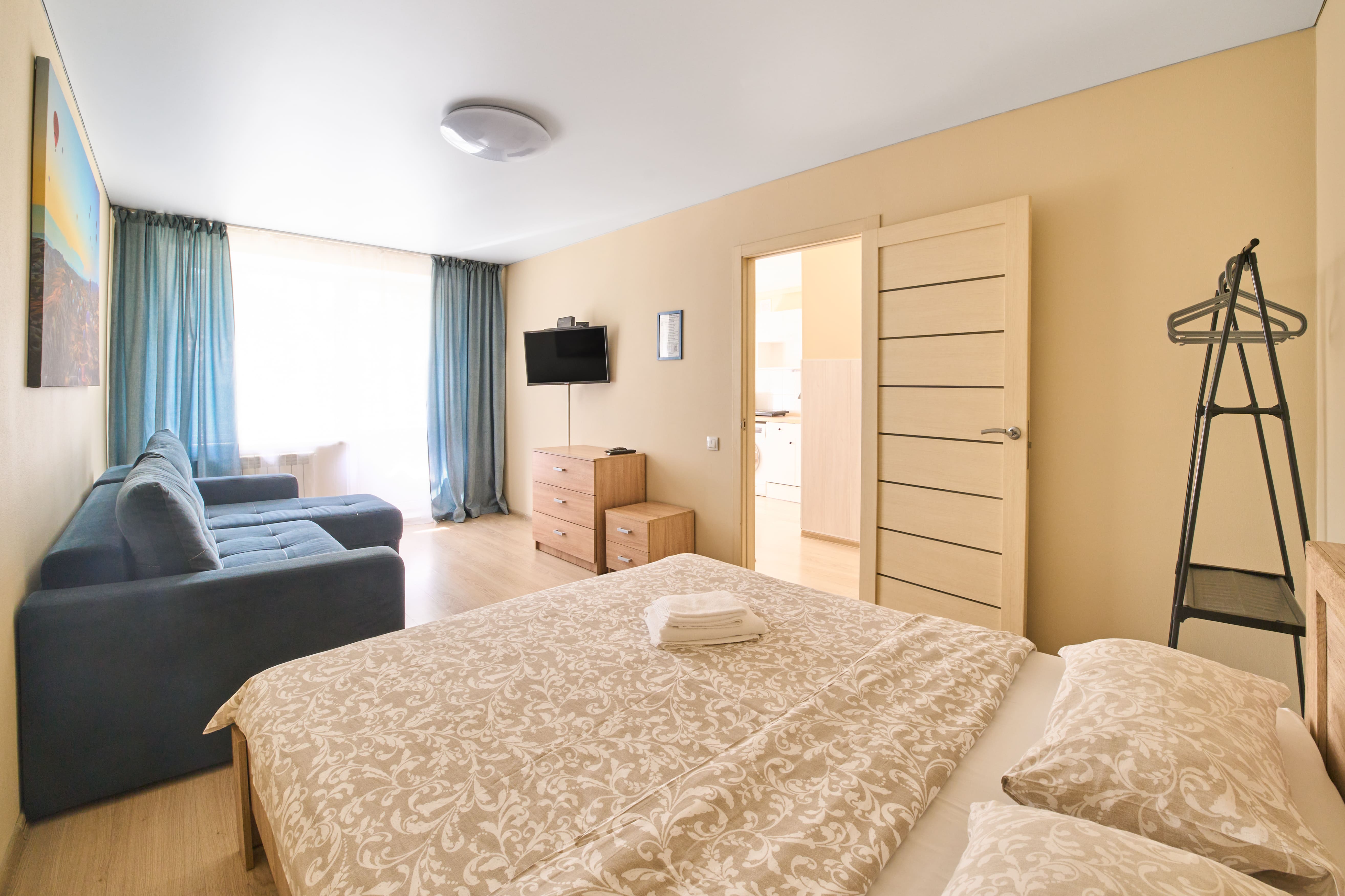 Квартиры расположены в спокойном месте, в шаговой доступности от Аэропорта Красноярск. Время в пути пешком: 10 – 15 минут. Время в пути на авто/такси: 4 минуты из аэропорта Красноярск и 6 минут из аэропорта Черемшанка.